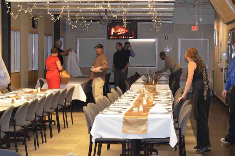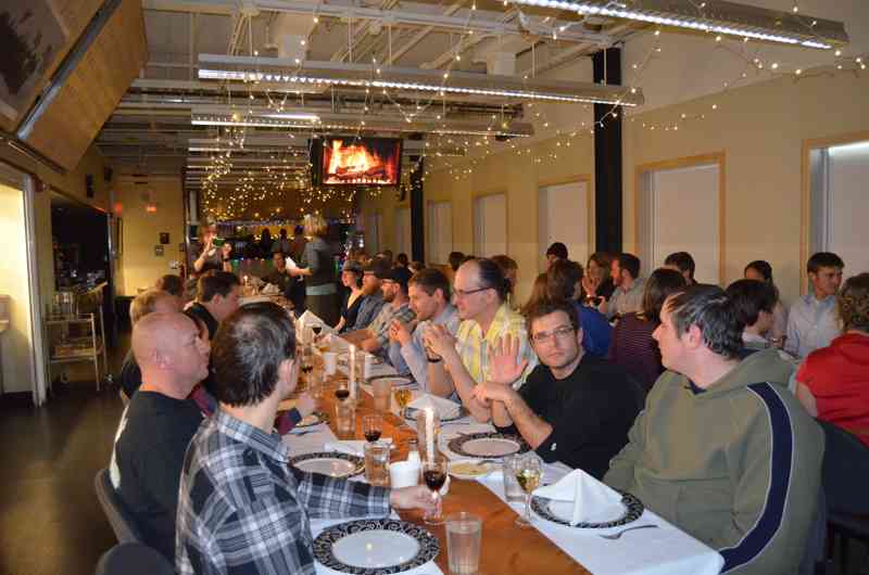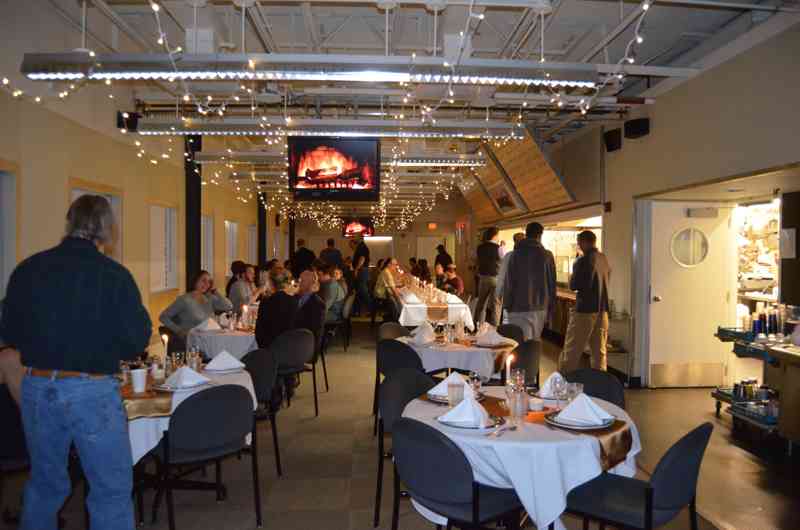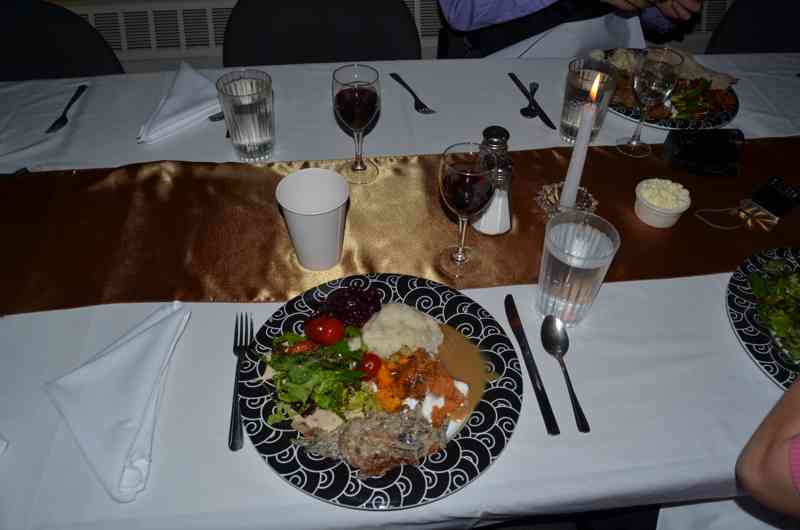 My first Thanksgiving. I had seen pictures and heared about celebrations at Pole, but it’s not the same to live it from inside. One starts the day before preparing pies, etc. In the morning, I volunteered for turkey carving and then dinner is server in three turns, since we are about 200. I was in the second sitting. We started with some appetizers at 5h and dinner at 5h30. At 6h30 you prepare the tables for the next sitting. I was serving the wine and deserts. It is fun to serve who were serving you before. It is a very familiar atmosphere.