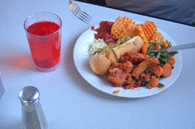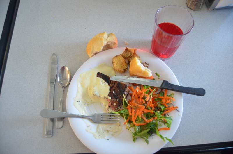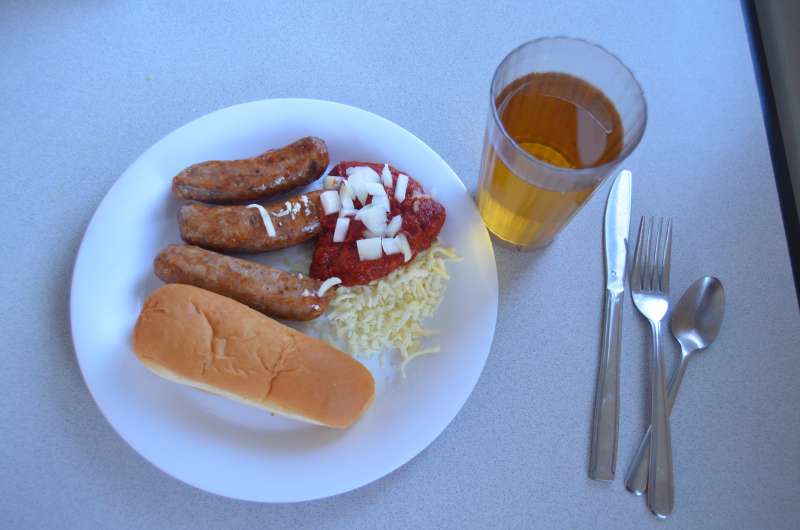 La comida, con zumo de manzana, para variar un poco.